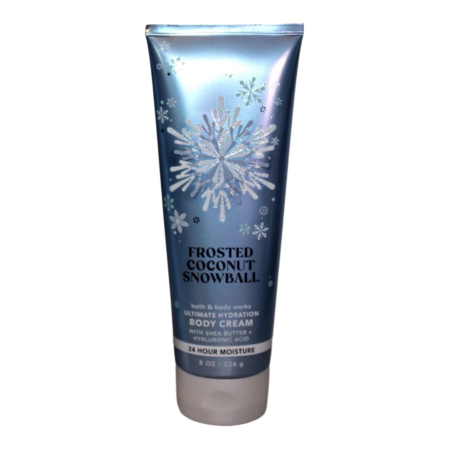 Indulge in the luxurious Bath and Body Works Frosted Coconut Snowball Ultimate Hydration Body Cream (8 OZ / 226 g). This rich body cream delivers deep hydration and a festive fragrance that captures the essence of winter with a sweet and cozy touch. It's perfect for pampering yourself during the chilly season and makes an excellent gift for anyone who loves a touch of sweetness and moisture in their skincare routine.