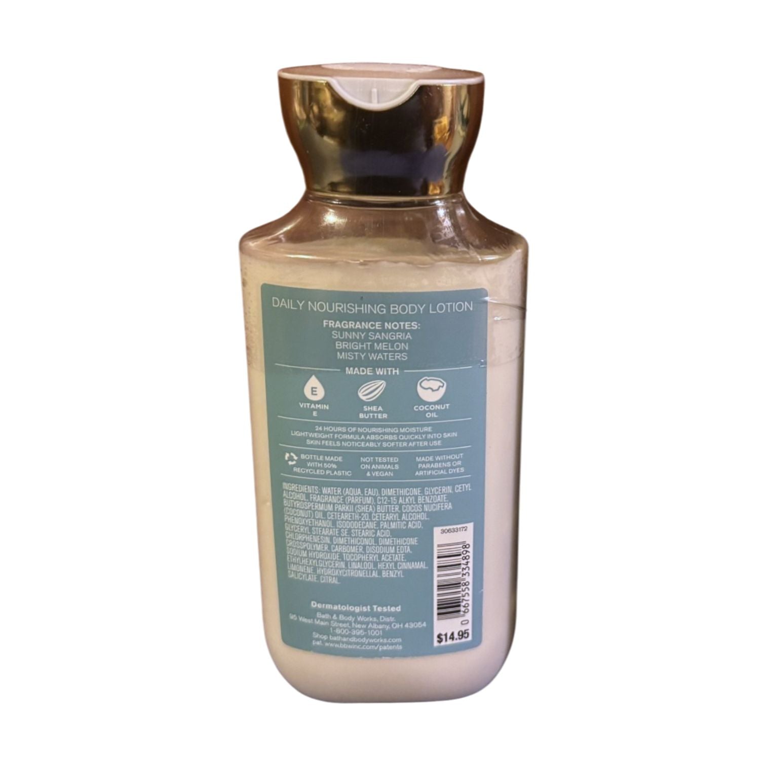 Experience a whimsical fruit-filled daydream with the Bath and Body Works Rainbow Waves Body Lotion (8 FL OZ / 236 mL). This lightweight lotion provides 24 hours of nourishing moisture, leaving your skin noticeably softer after just one use. Infused with vitamin E, shea butter, and coconut oil, it's perfect for daily hydration and to keep your skin feeling rejuvenated.