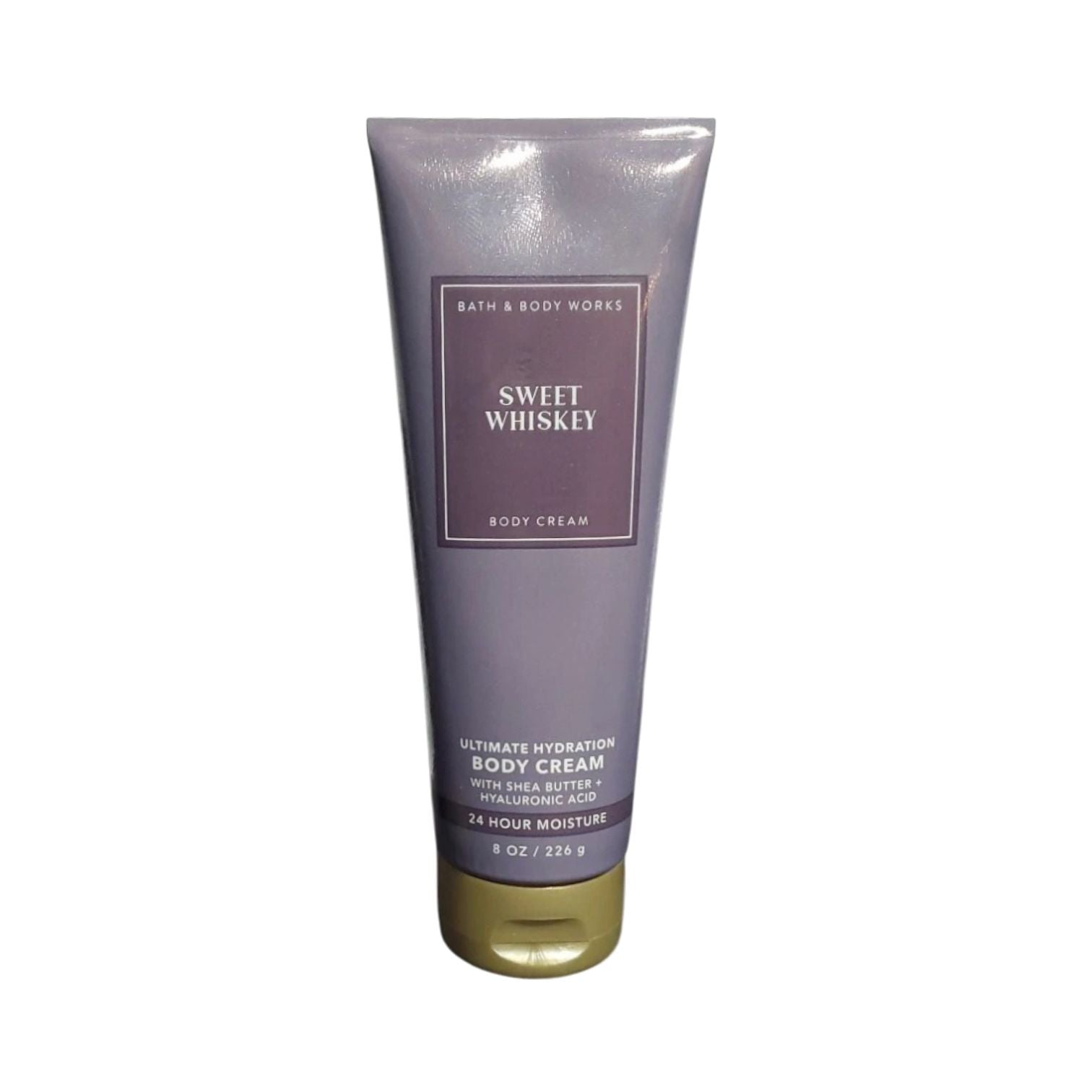 Experience the luxurious care of the Bath and Body Works Sweet Whiskey Ultimate Hydration Body Cream (8 OZ / 226 g). This cream provides intense hydration, relieving dry skin with 24-hour moisture. Infused with the goodness of natural essential oils, vitamin E, aloe, shea butter, cocoa butter, and hyaluronic acid, it's rich and luxurious for instant moisturization. Made without parabens or artificial dyes and dermatologist tested, the bottle is crafted from 82% recycled plastic, making it a responsible choice for skin care.