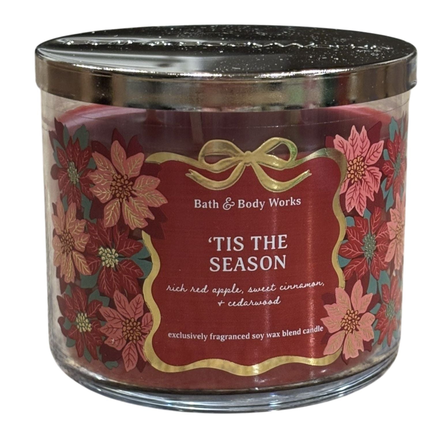 Experience the festive warmth with the Bath and Body Works Candle - 'Tis the Season 3 Wick Candle with Natural Essential Oils (14.5 Oz / 411 G). This delightful candle brings the essence of the holidays right into your home, with a rich blend of red apple, sweet cinnamon, and cedarwood. It's the perfect choice for setting a cozy, holiday atmosphere in any space.