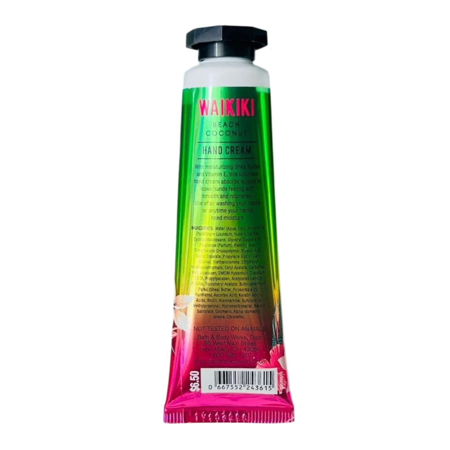 Experience the charm of the tropics with the Bath and Body Works Waikiki Beach Coconut Hand Cream Travel Size Lotion (1 FL OZ / 29 mL). This luxurious hand cream delivers a blend of tropical white coconut, saltwater breezes, and sun bleached woods, enveloping your senses in a warm, islandy atmosphere. Infused with moisturizing shea butter and vitamin E, it's perfect for keeping your hands soft, smooth, and hydrated wherever you go.
